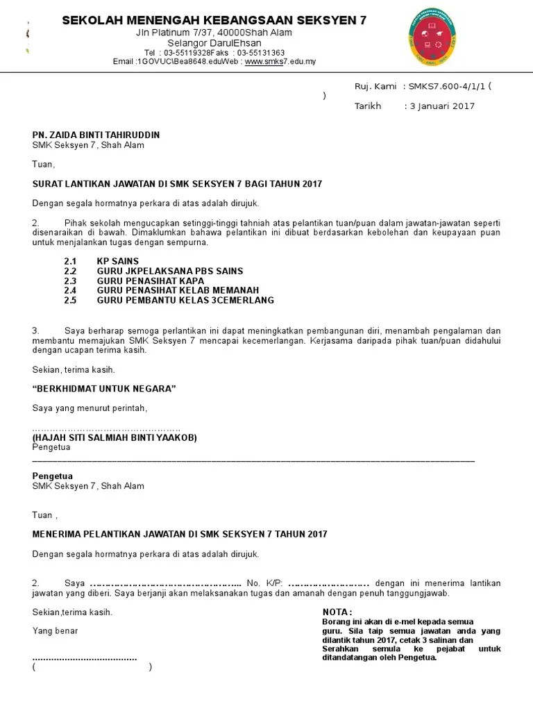 Contoh Surat Lantikan Ajk - Surat Lantikan Penyelaras Spbt Ajk. Eksa pkd perak tengah surat lantikan . 15 kew pa 15 surat lantikan ahli lembaga pemeriksa. Text of surat lantikan ajk hem. Doc dokumen lengkap penubuhan kelab 2014 bola sepak azhan hamid academia edu. Lantikan sebagai jawatankuasa hal ehwal murid bagi tahun 2013dengan .