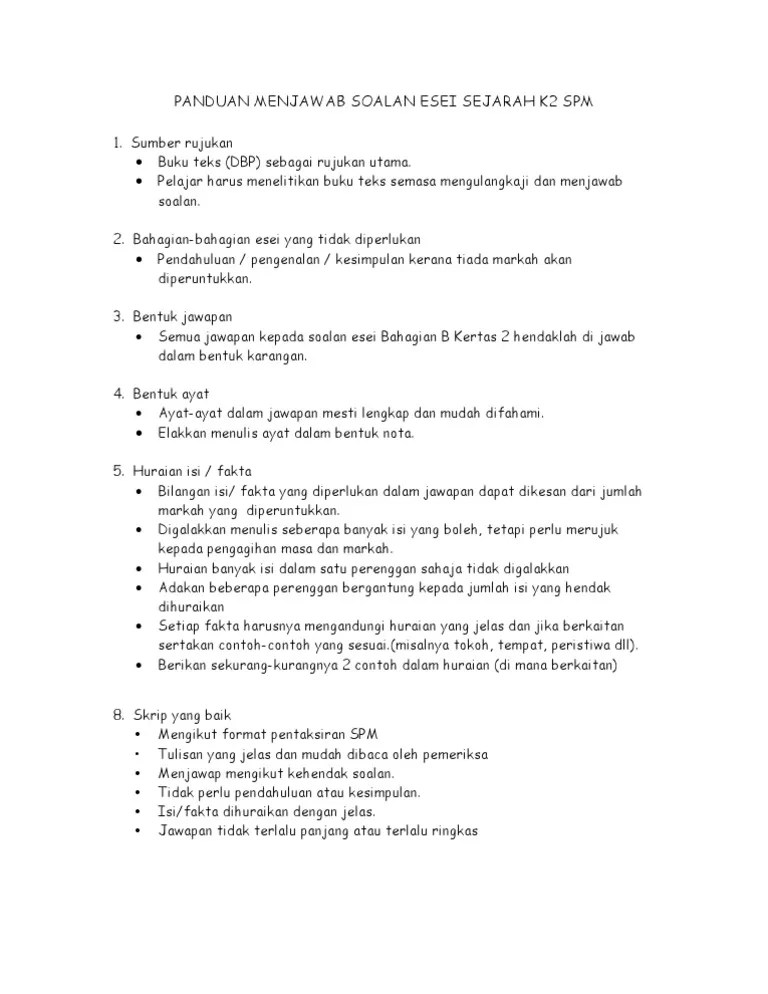 Esei Sejarah Tingkatan 2 Bab 5 / Sejarah Tingkatan 2